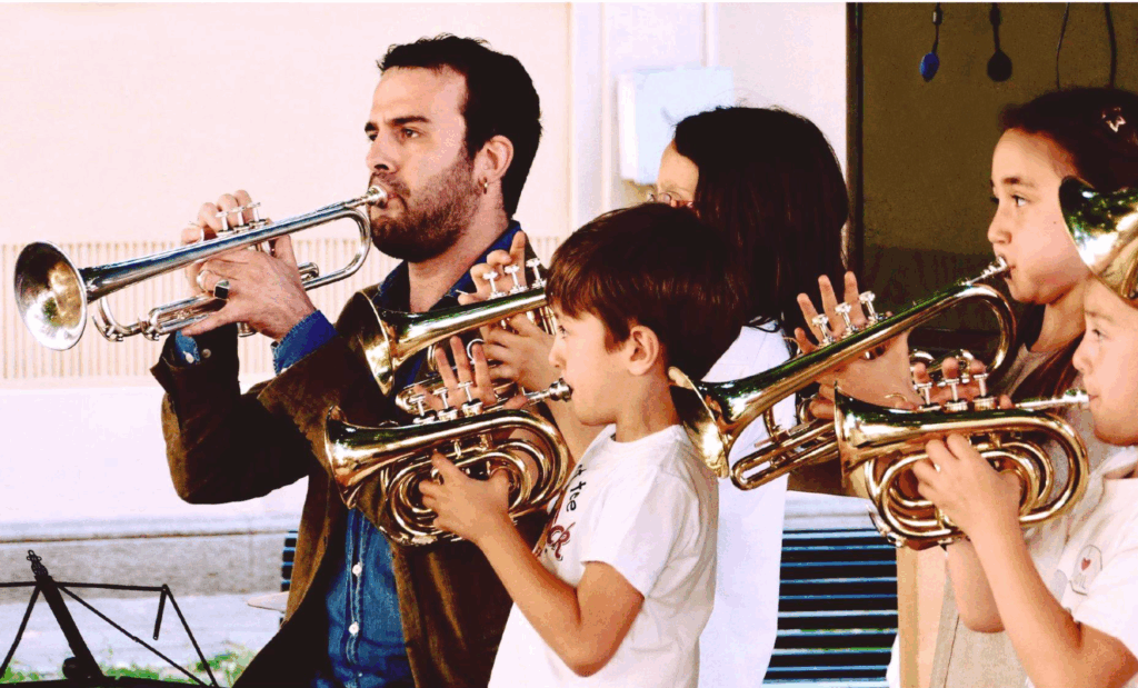 Jede Stunde entsteht aus der Person, die vor mir sitzt – aus ihrer Neugier, ihrer Zeit, ihrer Art zuzuhören. Man kann Trompete oder Klavier lernen, Komposition, Harmonie oder Musiktheorie; man kann elektronische Musik und Produktion mit Ableton erkunden oder einfach die eigenen Lieblingslieder spielen und singen. Wir arbeiten auch mit Stimme und Atem – lernen, Musik durch den Körper zu spüren und sich selbst am Klavier oder an der Gitarre zu begleiten. Oft wird der Unterricht zu einem Moment der inneren Ruhe – einem kleinen Ort des Gleichgewichts und der Vorstellungskraft.